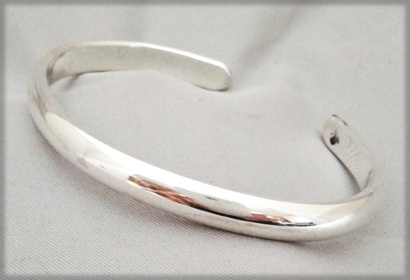 Constructed from Sterling Silver heavy Half Round Wire, this is a Cuff I never take off……With a 6.5″ length and a 1″ opening, the Cuff may be easily opened or closed to your perfect fit. Sterling Silver does not rust and can be worn day and night and when bathing. A Classic Must Have Bracelet!!! Need a different size? Contact us for Multiple or Custom Sized Orders. Please allow 2 weeks from Order to Shipment.