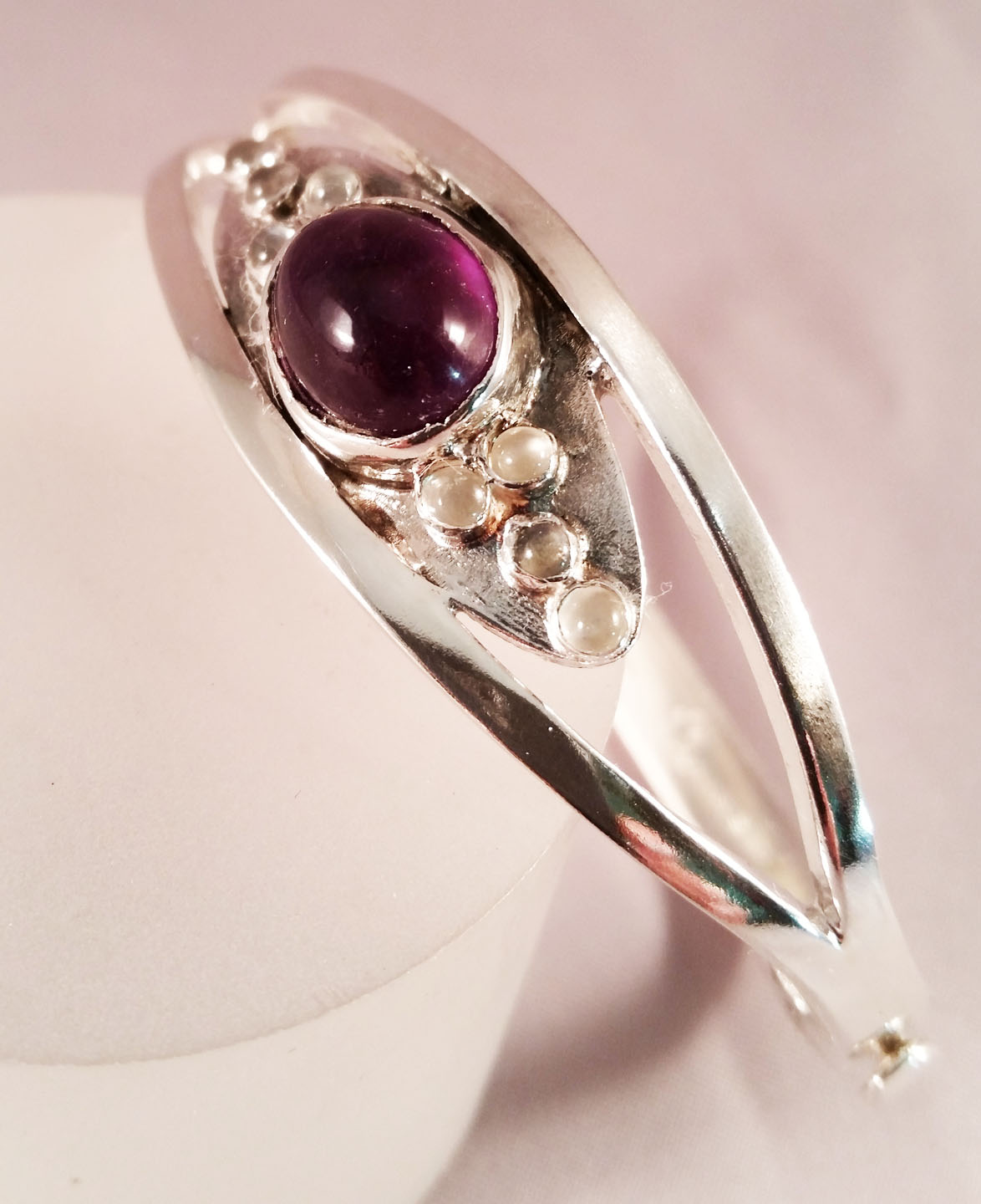 Sterling Hinged Bracelet w/Amethyst and Moonstones