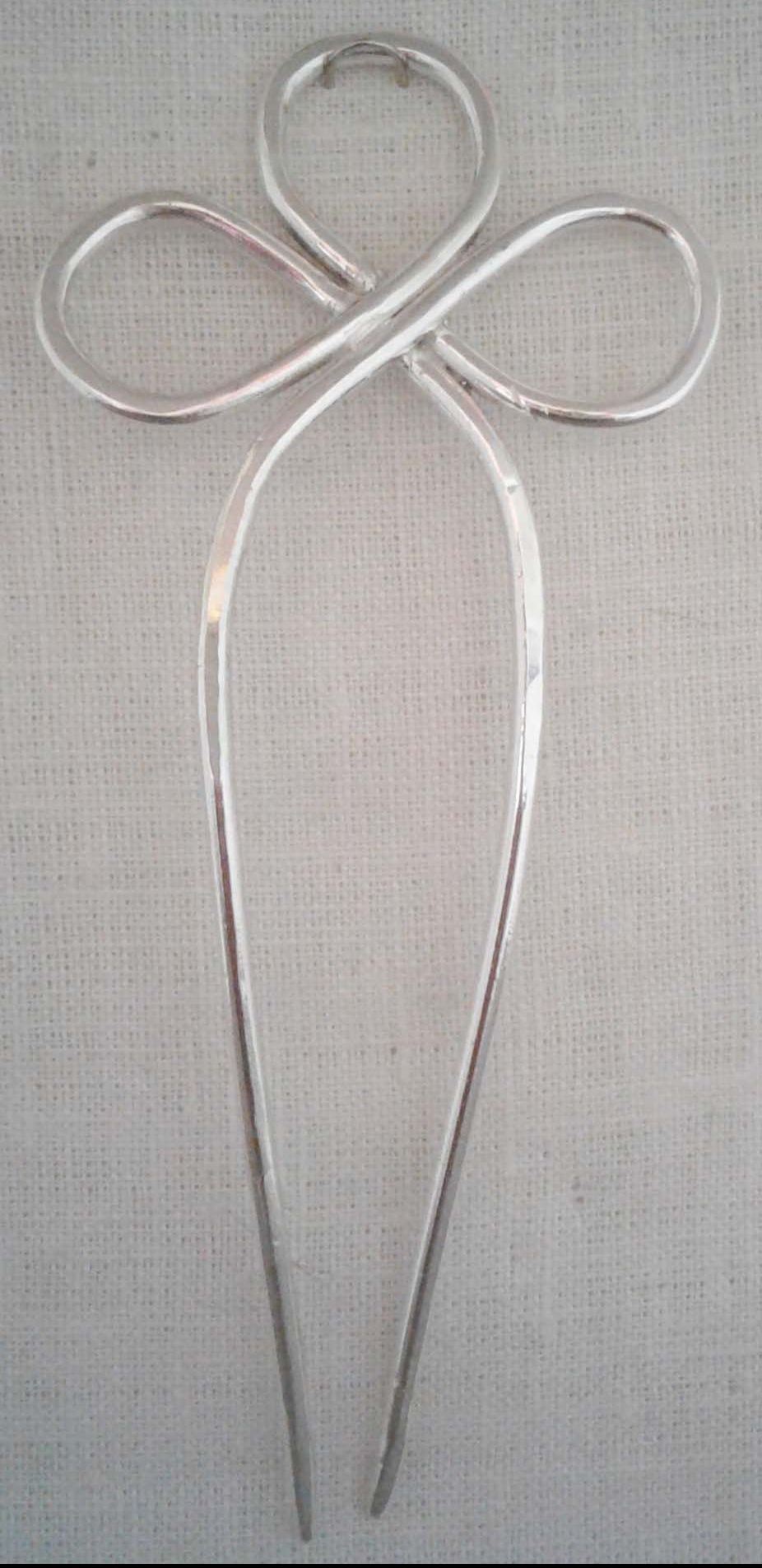 Heavy wire (10 guage) curved and polished into a gorgeous Tri-loop Hair Comb with 4″ tines to hold your hair. Both thin and heavy hair will be held securly for hours on end with this amazing Sterling Comb.